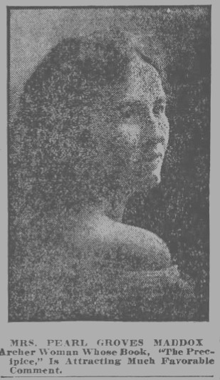 Pearl Groves Maddox was certainly a woman of many talents. In addition to serving as the Bookkeeper for the successful family manufacturing business, she also found time to write a novel titled “The Precipice”. In 1919. The book was well-received by critics.