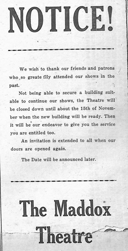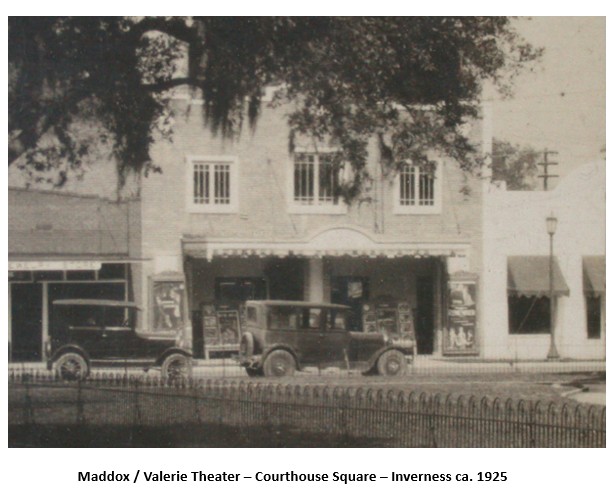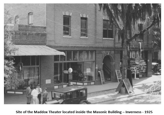 She rented space in the Masonic Building in Inverness and opened the “Maddox Theater”. It was a comparatively small venue. There was no marquee but rather relied on sandwich boards placed outside the building to attract passing citizens. She was also a prominent advertiser in the Citrus County Chronicle.