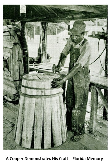 After the demise of the turpentine companies and the use of metal or plastic barrels for fish shipment, then need for coopers faded in Citrus County. By 1950, not a single person listed cooper as their profession.