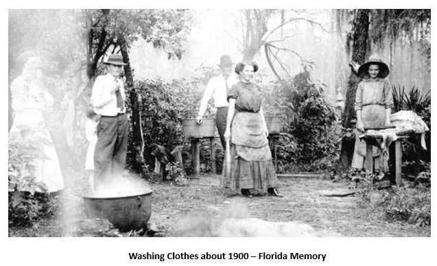 The large influx of workers in the phosphate and turpentine industries led to a business opportunity for local women. The men who worked in the forests and mines sometimes needed to clean their clothes but had neither the time nor the inclination to tackle that task. Women had historically “taken in laundry” for pin money but the demand had grown so much that “washerwoman” became a recognized job in the US Census.