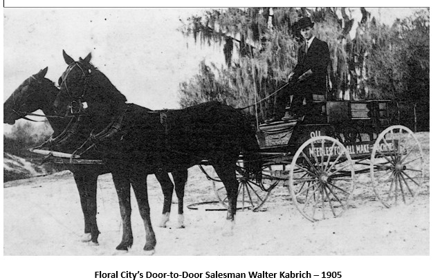For example, Floral City’s Walter Kabrich would hitch up his wagon to a pair of horses every day and set out on the dirt roads of Citrus and Hernando Counties. Sewing machines had become an integral part of domestic life and Kabrich’s business was centered around sales and servicing those devices. He would provide periodic oiling and maintenance as well as replacing needles that had become worn out or broken during daily life. Since it was impractical for people to bring their machines to a shop in town, Kabrich provided a valuable service to his customers.