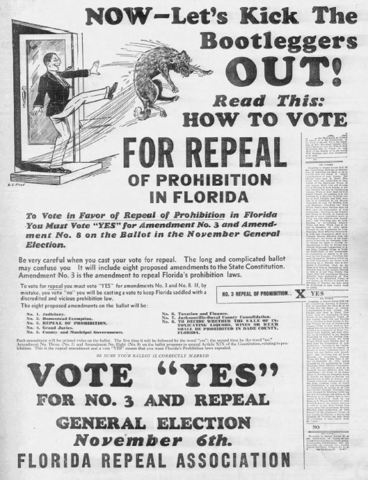 People across Florida were turning against prohibition. The Miami Daily News conducted a statewide survey in 1932 asking if the terms of the amendment should be loosened to allow beer and wine. Over 80% of respondents agreed with the proposal. The US Congress reversed course and left the matter of prohibition repeal to the states in 1933. Florida held a special election to decide the matter in November 1933. Citrus County had seen enough – the “wets” won the vote by an 8 to 1 margin. Florida agreed that Prohibition should be removed from the US Constitution.