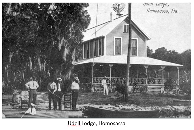 The property that came to be known as “Crumps Lodge” was originally constructed by a retiree from Utica NY in the early 1900’s. After spending several winter seasons at the nearby Rendezvous Lodge, Spencer R. Udell decided to purchase nearby land on the banks of the Homosassa River and replace the small cottage with a more opulent building befitting his status as the “Cheese King of Utica”. He opened the property to a limited number of affluent Northern visitors and named the property “Udell Lodge”. A small restaurant was added in 1909. Udell continued to live in the property until his death in 1921 at age 79. The lodge went through a number of owners until purchased by Georgia businessman Charles Kibbee Crump in 1942.
