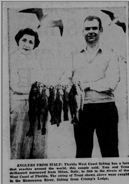 Crump became active in the Homosassa community and personally supported charities such as the Red Cross. He helped form the Homosassa Chamber of Commerce and served as the organization’s treasurer. When the federal government passed a law levying a 15% excise tax on small (less than 10 passenger) boats for hire, Crump was leader of the Homosassa lodge owners and guides that fought to have the law repealed. He continued to successfully operate the fishing lodge until his death in 1971.