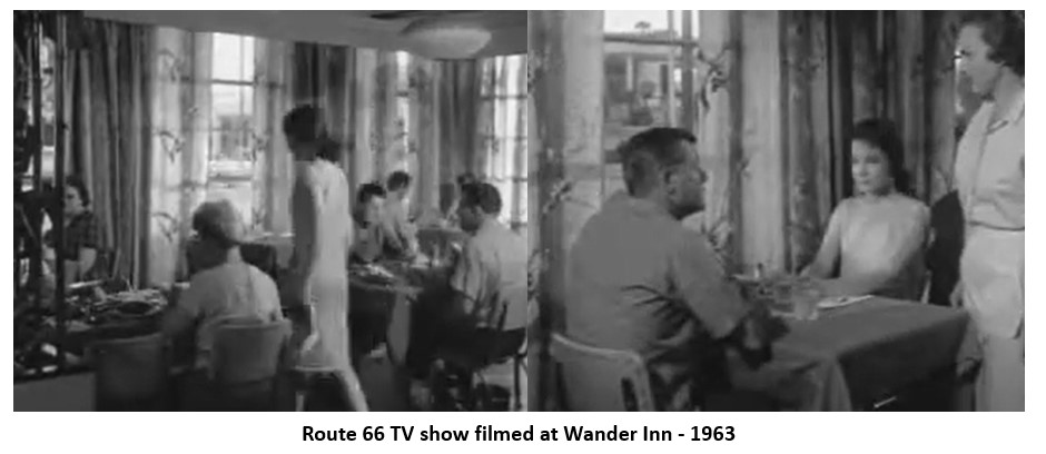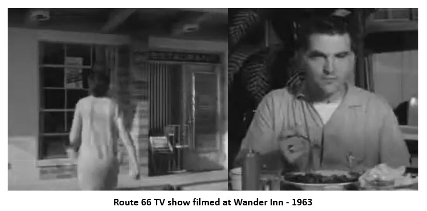 The Wander Inn achieved some measure of national fame when the Route 66 TV show rolled through town in 1963. The exterior and interior of the restaurant were used for some of the scenes in the show. Local bystanders were given a chance to briefly appear on screen as extras. While the excitement didn’t reach the level of Elvis Presley’s visit a few years ago, the downtown area was thronged with curious locals watching the proceedings.