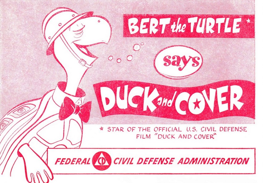 On the morning of Friday October 26, 1962, most of my classmates were intently watching the Southern skies during recess. Some of the older students had told us that nuclear war may be starting that day because the Russians were bringing missiles to Cuba and the US Navy was going to stop them. We all scanned the horizon that day and saw missile contrails in every cloud. Occasionally someone would report that they saw a flash of light that must be a nuclear bomb. We weren’t especially worried, though, because we had been instructed by the government’s Civil Defense (CD) program to save ourselves by ducking under our school desks and covering our heads with our hands. This “Duck and Cover” maneuver would protect us from whatever damage the Soviet warheads could dish out.