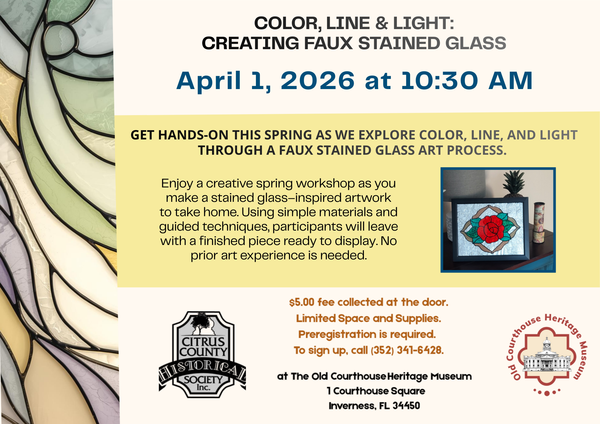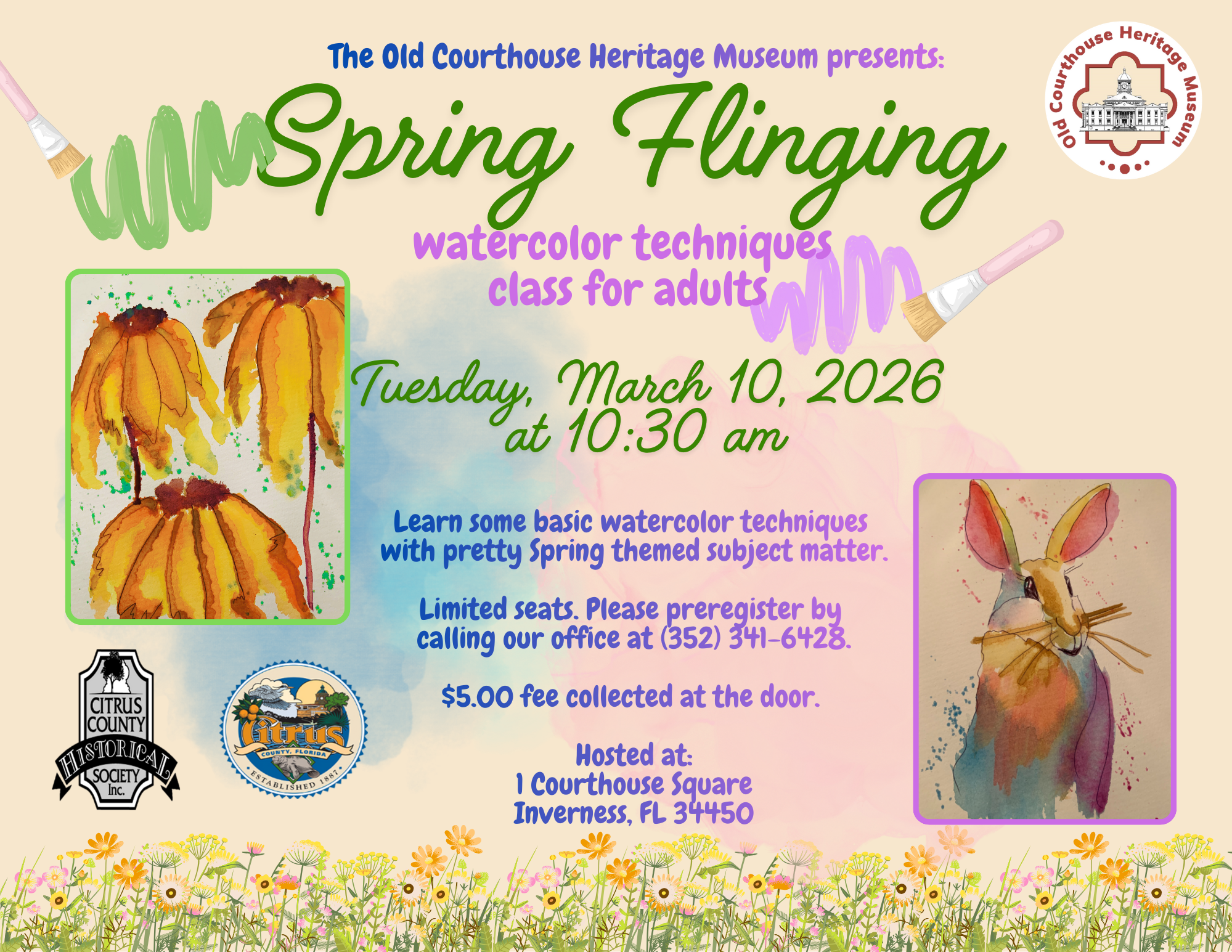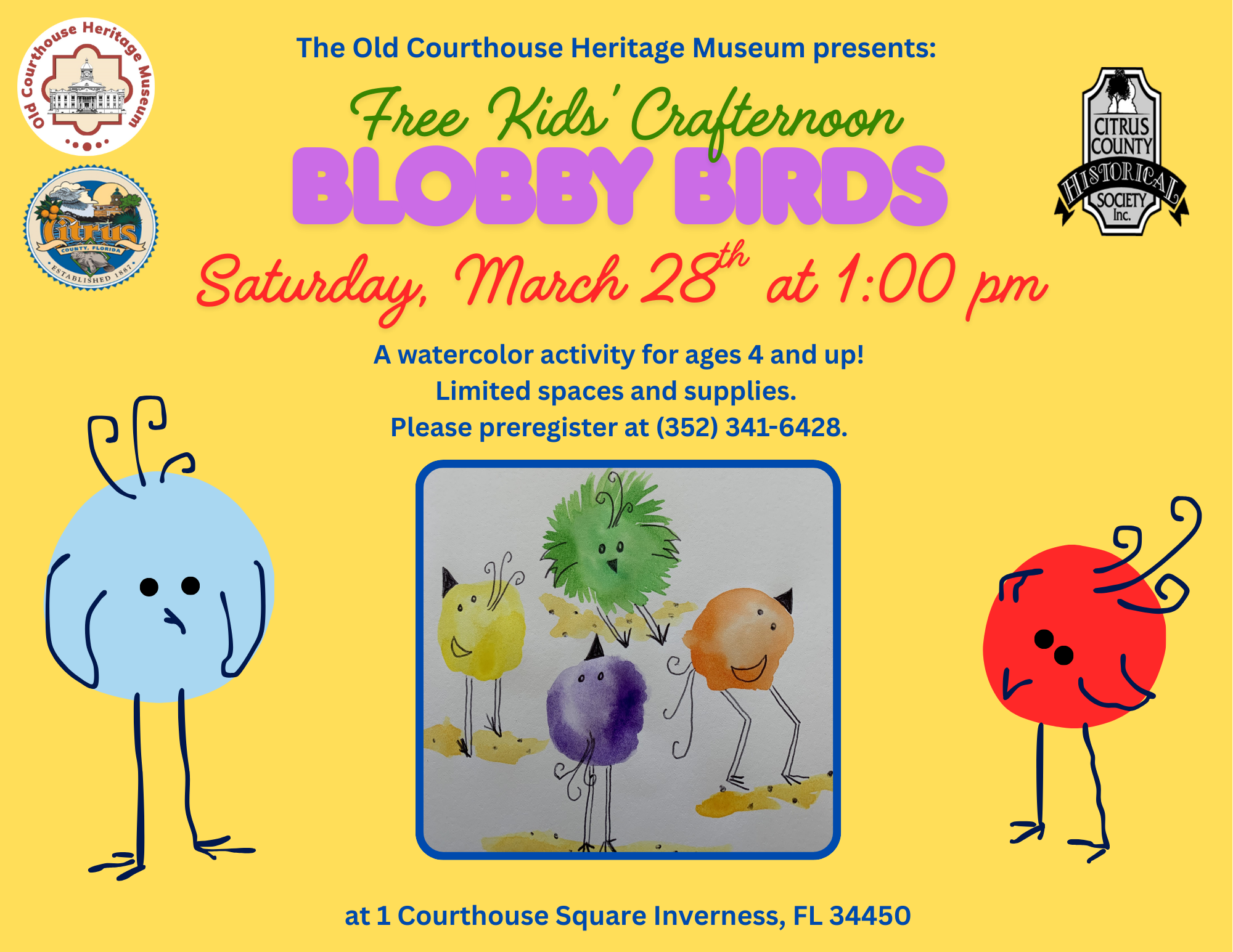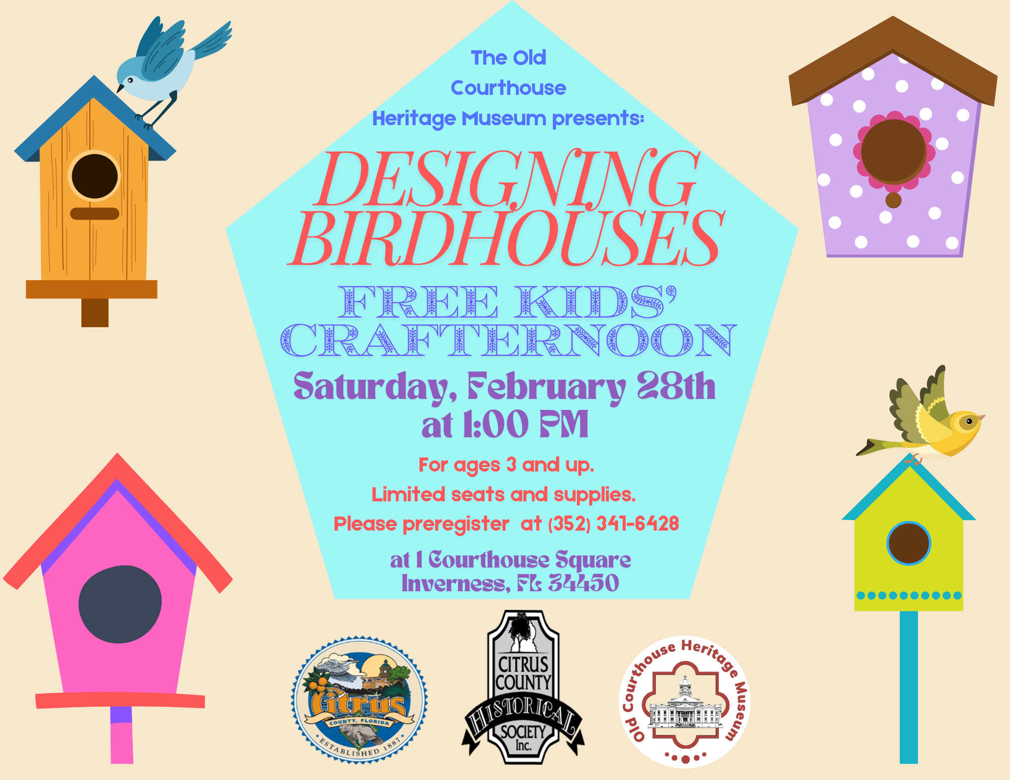 Bring the kids to join staff at The Old Courthouse Heritage Museum as we paint designs on birdhouses for the Spring. This Free Kids' Crafternoon will be hosted on Saturday, February 28, 2026 at 1:00 pm. Preregistration is required as there are limited seats- to sign up, please call (352) 341-6428 in advance of the […]