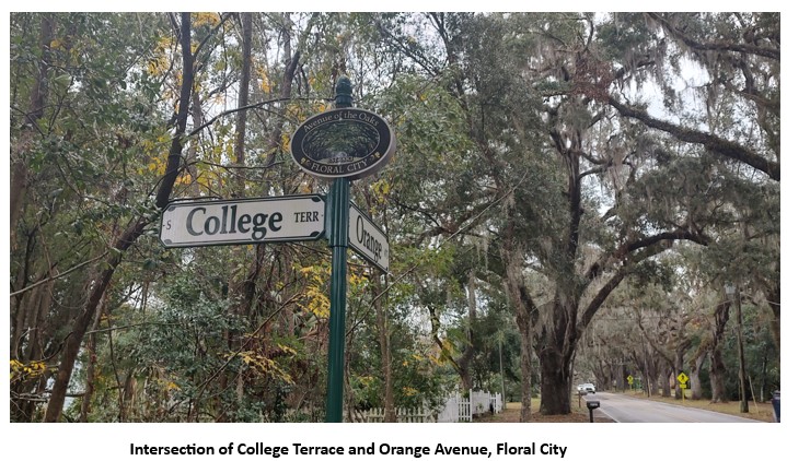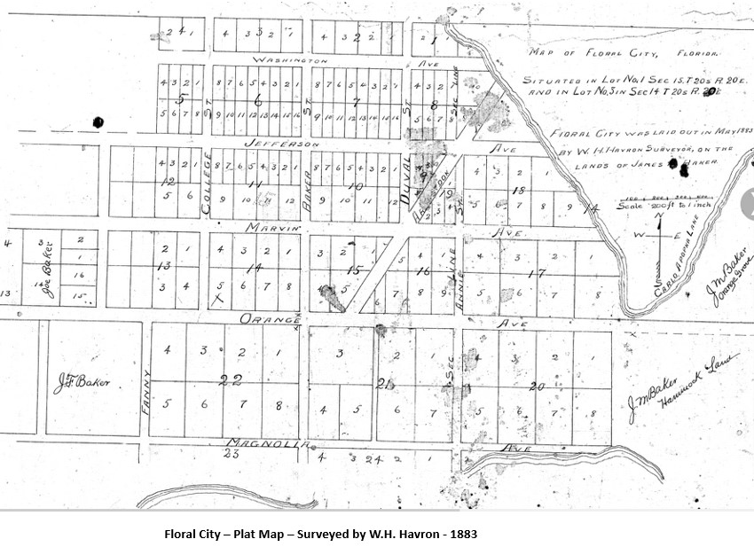 The Baker’s were one of original pioneer families in Floral City. James M. Baker needed to have his extensive landholdings formally surveyed and designated as a village in the county clerk’s office. He struck up a friendship with Havron (his eventual brother-in-law) and discovered that the Tennessean possessed the surveying expertise that Baker needed. Together with Senator A.S. Mann, Baker prevailed on Havron to lay out the new village of “Floral City” in 1883. Havron’s original map is on file in the Citrus County Clerk’s office and can be located in Plat Book One. Of course, one of the roads was named “Baker Street”. As you may have guessed by now, “Annie Street” runs through the heart of the new village. He had married “Nettie” Duval in 1878 so the new area featured a “Duval Street”. The Baker’s first son was named “Marvin” and one of the avenues bears his name. College Street (now “Terrace”) intersects with Marvin Avenue and was selected as the site of a new school for higher education.