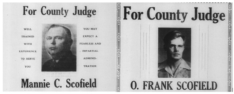 The Democratic primary results were announced in Chronicle on May 6, 1948. Young Frank had won the “Battle of the Scofield’s” by a 2 to 1 margin. Judge May came in second in the primary and would face Frank Scofield in a run-off on May 25, 1948. He won the judge’s bench by almost 200 votes in the final election and would serve in that capacity for 20 years.