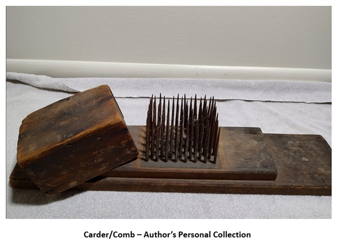 Settlers collected any available materials that nature offered. Piles of wool and cotton were gathered, washed and dyed in preparation for the process of making cloth. Using a sharp metal-spiked carder or comb, the fibers were untangled and fashioned into a long string of threads. The material was then fed into a spinning wheel that twisted the threads into the desired thickness and pattern. In the next step, the user would feed the thread to a device known as a “spinner’s weasel”. The thread wound around the spokes of the “weasel” while a set of mechanical gears measured the thread, enabling the spinner to produce a uniform skein of thread.
