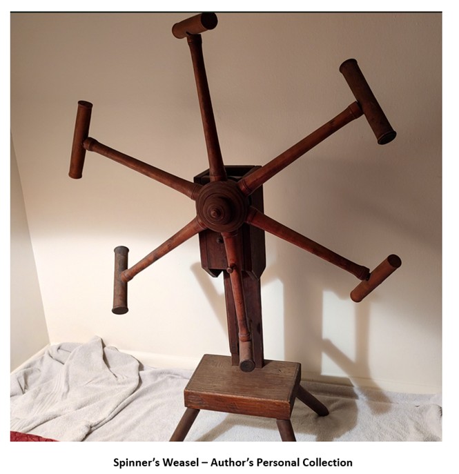 The “weasel” would produce an audible popping sound when the desired amount of thread was processed. Some claim that this device may have been the inspiration for a verse in the famous children’s nursery rhyme – “pop goes the weasel”.