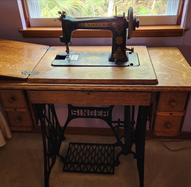 The Singer Treadle sewing machine pictured was recently donated to the Citrus County Historical Society. This popular foldable model is over 100 years old and can be viewed when touring the Old Courthouse Heritage Museum in Inverness. This model did not require electricity because power was supplied by the operator’s continuous foot action on a pedal that was linked to the needle mechanism by mechanical gears.