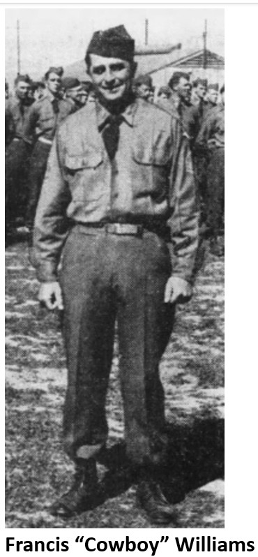 Private F.W. Williams related that his initial experience after enlistment in 1944 was like being on an assembly line where you are told to “move it” and collect your new uniform, get medical shots, learn how to salute and then shunted from one barracks to another while waiting for your first assignment. Long-time residents may remember the new recruit as the future Citrus County Clerk “Cowboy” Williams.