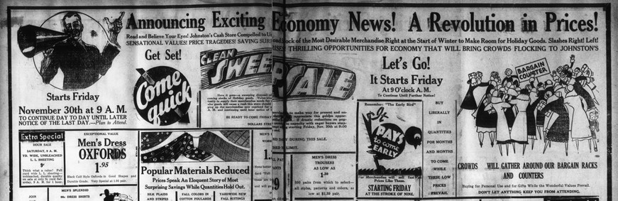 People reminisce about the “Good Old Days” when there was none of the commercialism of today’s Black Friday. However, it has been a common practice in the past to hold special shopping days immediately after Thanksgiving. Stores would place full page advertisements in the Citrus County Chronicle and offer special deals for customers who arrived promptly at 9am on the next day. Much like today, special deals would be offered later in the day to keep customers coming back. While they didn’t have the Internet, merchants were acutely aware of the marketing tactics to boost their bottom line.