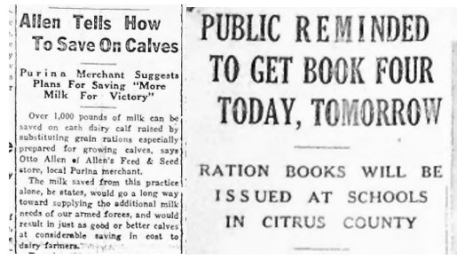 Given the wartime constraints, housewives were offered alternative substitution recipes to provide a Thanksgiving meal for their families. Meetings of the “Health for Victory Club” were held in Citrus County where nutritional experts presented meal planning guides for Thanksgiving and daily mealtimes.