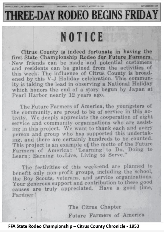 We can’t forget the contributions that local 4-H’ers have made to agricultural life in Citrus County. My previous article covering the 4-H clubs can be found at : https://cccourthouse.org/the-growth-of-4-h-in-citrus-county/