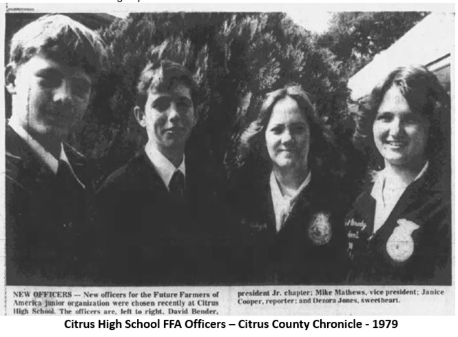 The local chapters followed suit and with a few years, girls were also sporting the familiar blue jackets at the Citrus County Fair. By 1973, they joined the governing board of the local FFA chapters and served as officers in those groups.