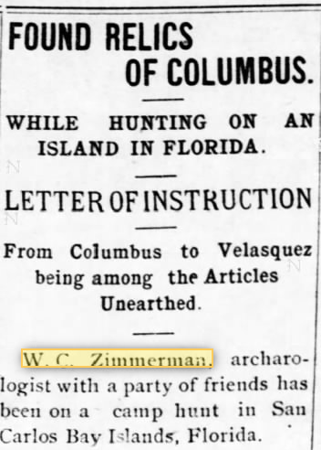 Most Citrus County residents are probably unaware that a few short years later our W.C. Zimmerman was destined for greater fame as the county’s first national sensation. In the days before Instagram and Twitter, W.C. Zimmerman’s discoveries off the coast of Ft. Myers would go “viral” in hundreds of newspapers across the United States.