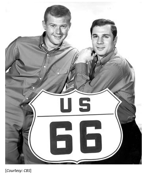 The CBS broadcasting network decided to take advantage of the highway’s fame by developing a weekly TV show titled simply “Route 66”. Two buddies would cruise the open highway on a quest to explore America in a dramatic series. It did not hurt ratings that both men were young and handsome and they traveled in a sleek new Chevy Corvette. Martin Milner and George Maharis starred as “Tod Stiles” and “Buz Murdock”, respectively. Many younger viewers tuned in to live vicariously through the actor’s journey of self-discovery across America’s roads.