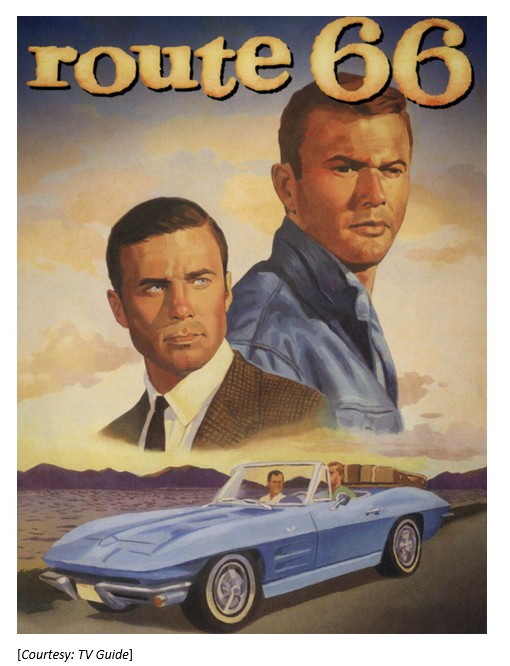 Route 66” premiered on October 7, 1960 immediately after conclusion of the second Kennedy-Nixon Presidential debate. It enjoyed an enviable timeslot on the CBS Friday night schedule, nestled between Clint Eastwood’s “Rawhide” and Rod Serling’s “Twilight Zone”. Chevrolet generously provided the duo with the latest Corvette models every year. Coincidentally, GM reported a 230% increase in Corvette sales during the duration of the series.